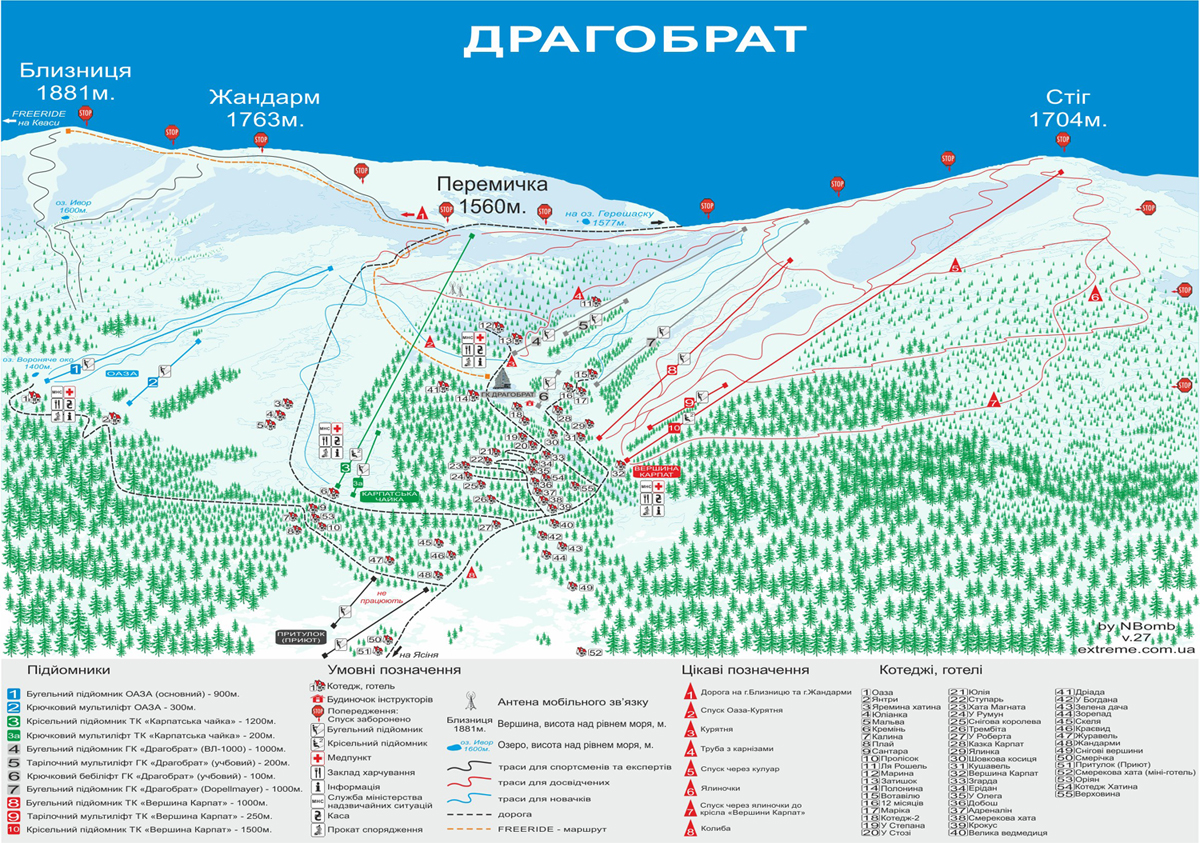 Рядом с горой Стог располагается еще один горный массив – Близница, с пиком в 1883 метра. В среднем же, перепад высот в Драгобрате – порядка 500 м, что позволило обустроить трассы с различной степенью сложности. Посетив Драгобрат, вы больше никогда не зададитесь вопросом, где отдохнуть активно зимой, ведь к услугам горнолыжников: